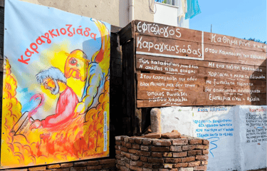 Η αίσθηση των αναλογιών ήταν πάντα σε τούτη την προσπάθεια το μέγα ζητούμενο Και αναλόγιο έγιναν οι τοίχοι της πολιτείας με ποίηση από τον βίο και τα πάθη του καραγκιόζη, με λέξεις και στίχους που παγίδευσε για τις ανάγκες του. Ότι διέδωσε ο πολυμήχανος για να αιφνιδιάσει τους καλεσμένους του. Όσους αξιοθήκαμε να ακολουθήσουμε τα γυμνά του πατήματα σε έναν περίπατο αλήθειας.