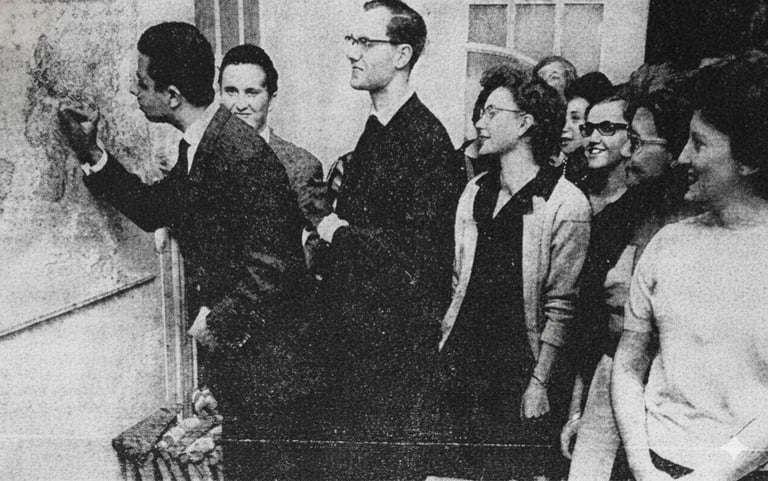 Εις την Φωτογραφία της 13. Ιουνίου 1962 με τίτλο: «Είμαι εις το σπίτι μου» αναπαριστάνεται ένας Φοιτητής από την Αίγυπτο να δείχνει εις τον Παγκόσμιο Χάρτη την χώρα του, και ακριβώς δίπλα σε αυτόν ευρίσκεται ο Γεώργιος Εμμ. Δημητράκης.